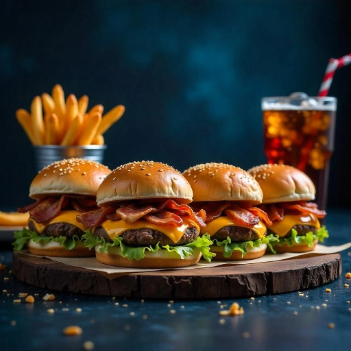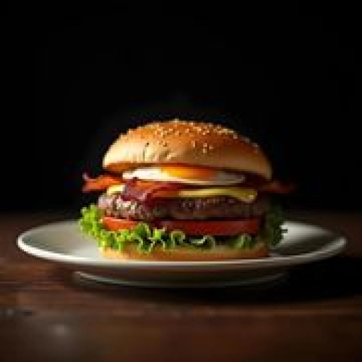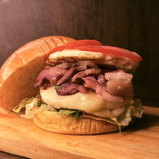 Bacon, carne, molho, ovo, pão, queijo, salada